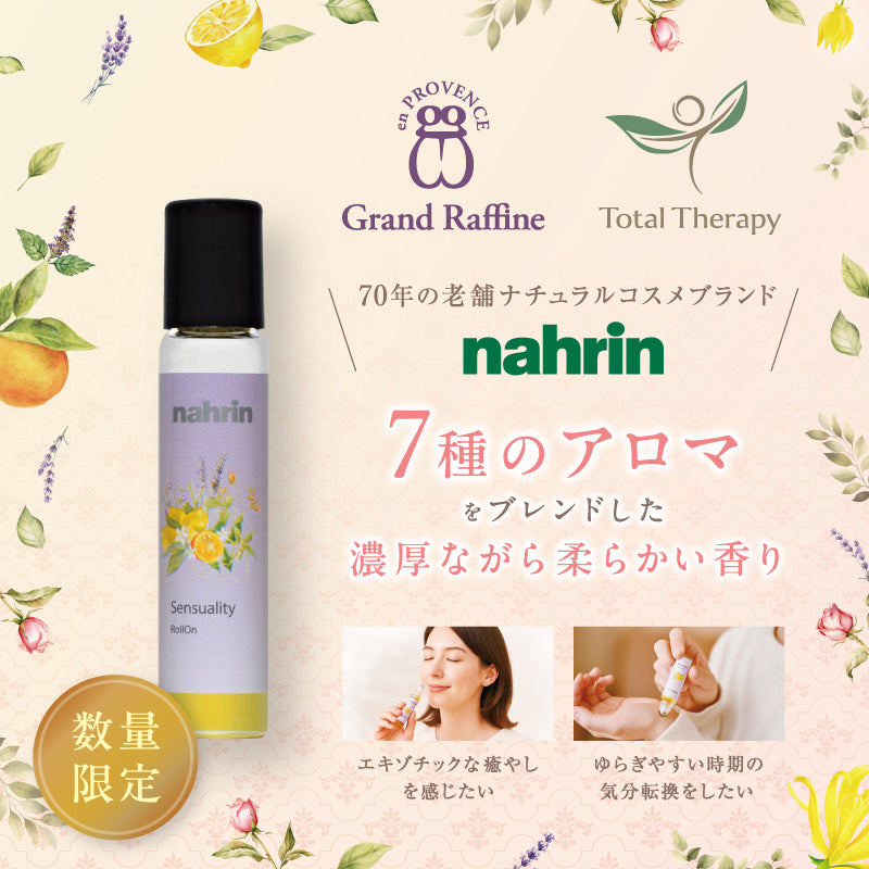 スイスの修道院に中世から伝わるハーブレシピをベースにしたナリン人気のブレンド『センシュアル』シリーズの持ち運びに便利なロールオンタイプです。