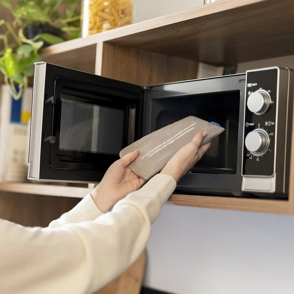 付属のコットンバッグに室温の本体を入れてください。汚れが付着しないようレンジ対応の皿の上に置いて温めることを推奨します。※汚れが付着すると異常発熱、発火・火災の恐れがあります。