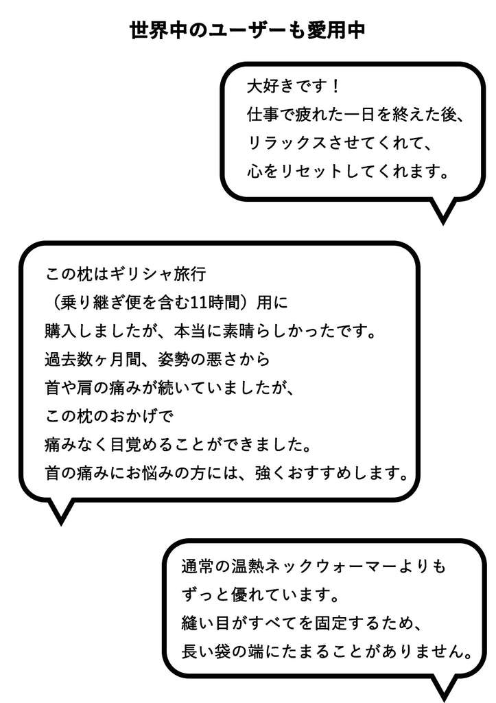 ストレスで凝った首と肩に、心地よい圧迫感と優しい温かさで、リラックスしたひとときを過ごしませんか?
