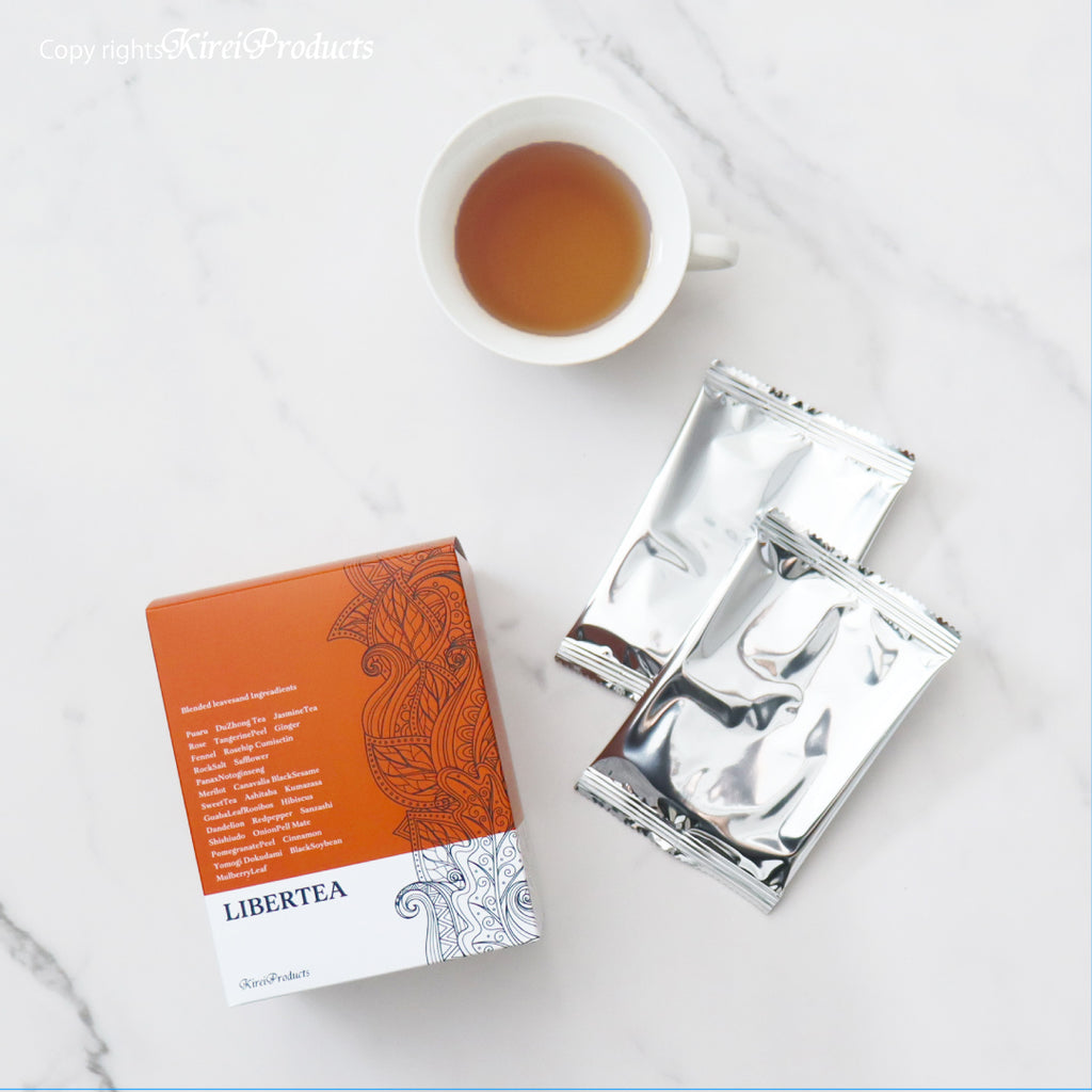 | 原材料 | プアール、杜仲葉、ジャスミン茶、バラの花、みかんの皮、米ぬか発酵物(デキストリン、米ぬか発酵物)、ショウガ、フェンネル、ローズヒップ、クミスクチン、岩塩、ルイボス、メリロートエキス末(メリロートエキス、マルトデキストリン)、ベニバナ、なた豆、黒ゴマ、甜茶、アシタバ、熊笹、グァバ葉、ハイビスカス、タンポポ根、唐辛子、サンザシ、シシウド、タマネギ外皮、マテ茶、カリン、シナモン、黒大豆、ヨモギ、ドクダミ、田七人参、桑の葉 |