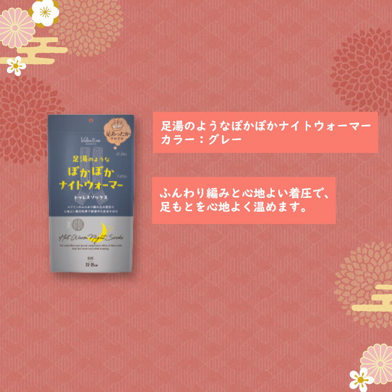 足の冷え対策に。仕事や家事でのお疲れ足におすすめです。